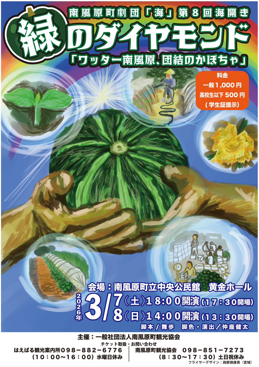 劇団「海」第8回目の海開きは、南風原町の特産品「かぼちゃ」。與座清正さん、新垣雄善さんをはじめとするかぼちゃを愛する方々の想いと情熱を集めて芝居にしました!