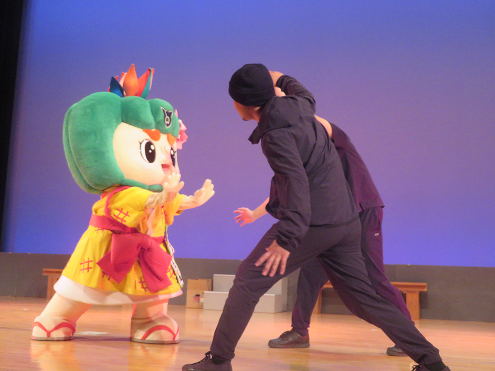 劇中では、歌やダンス、殺陣、南風原町の公式観光キャラクター「はえるん」登場で会場が盛り上がり、113年ぶりに復活した津嘉山の伝統芸能踊り「ウスデーク」では観客が見入っていました。